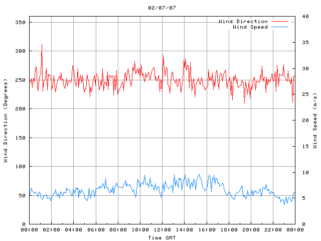 - Max Wind Speed: 9.7 ms-1 Time: 15:20:22 GMT
