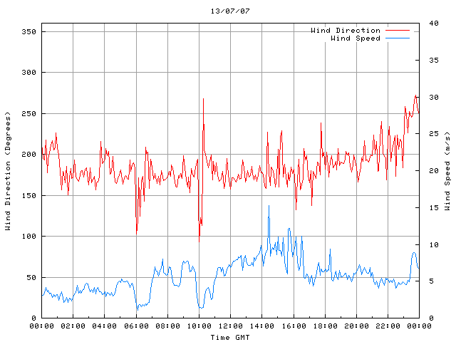 - Max Wind Speed: 15.2 ms-1 Time: 14:25:22 GMT