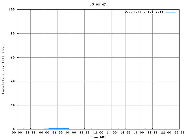 The PML meteorological station, situated on the south-west corner of the building roof, consists of a Hygroclip S3 temperature and humidity sensor housed in a radiation shield, a Mierij Meteo solid state wind sensor (MMW-005), a Chelsea instruments half-hemisphere PAR sensor, a Li-Cor pyranometer (LI-200SZ) and an Omni Instruments 6" tipping bucket raingauge (RG200). The data are logged every 5 minutes using a Pace Scientific XR5 data logger. The real-time rainfall data is likely in error - the correct values will be displayed after a time lag of approximately 24 hours. The meteorological station is sheltered from winds in the north-east and underestimates winds from this quarter. To use these data please contact Dr Tim Smyth.