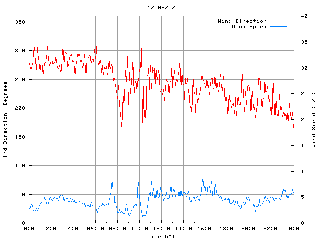 - Max Wind Speed: 8.7 ms-1 Time: 15:45:22 GMT