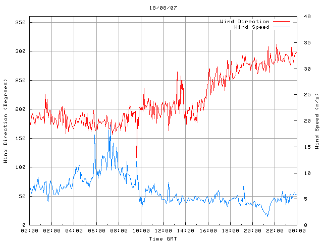 - Max Wind Speed: 19.3 ms-1 Time: 7:15:22 GMT