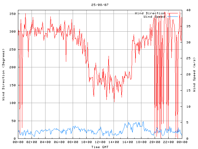 - Max Wind Speed: 5.3 ms-1 Time: 18:20:22 GMT