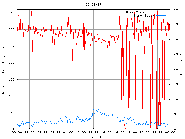 - Max Wind Speed: 6.7 ms-1 Time: 12:00:22 GMT