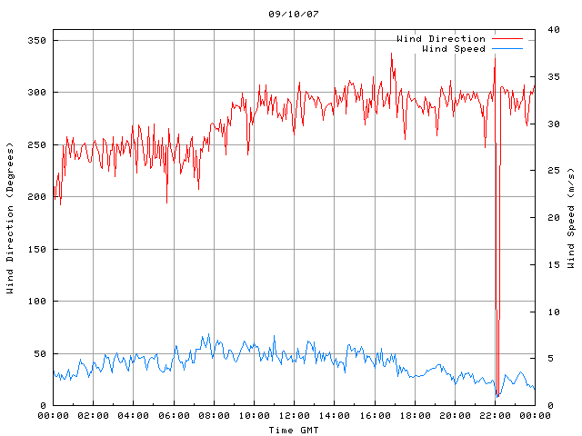 - Max Wind Speed: 7.7 ms-1 Time: 7:45:22 GMT