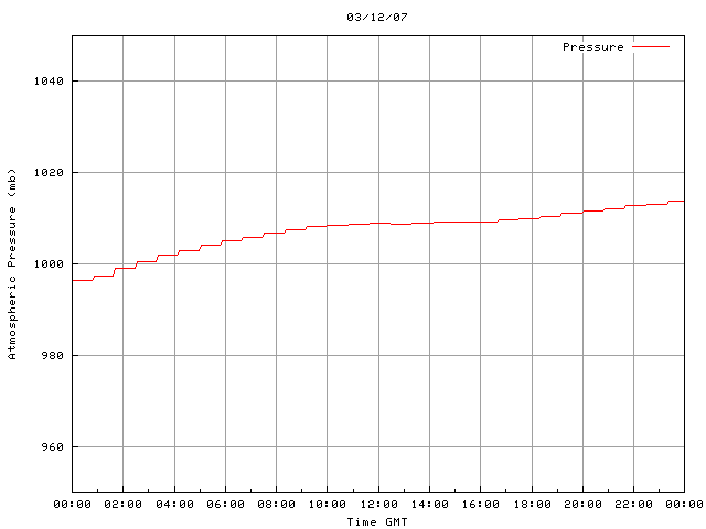 The PML meteorological station, situated on the south-west corner of the building roof, consists of a Hygroclip S3 temperature and humidity sensor housed in a radiation shield, a Mierij Meteo solid state wind sensor (MMW-005), a Chelsea instruments half-hemisphere PAR sensor, a Li-Cor pyranometer (LI-200SZ) and an Omni Instruments 6" tipping bucket raingauge (RG200). The data are logged every 5 minutes using a Pace Scientific XR5 data logger. The real-time rainfall data is likely in error - the correct values will be displayed after a time lag of approximately 24 hours. The meteorological station is sheltered from winds in the north-east and underestimates winds from this quarter. To use these data please contact Dr Tim Smyth.