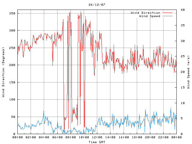 - Max Wind Speed: 8.5 ms-1 Time: 23:07:09 GMT