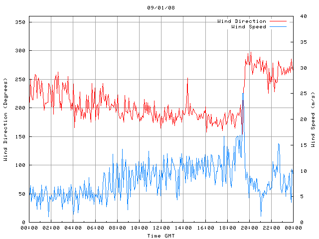 - Max Wind Speed: 25.0 ms-1 Time: 19:22:09 GMT