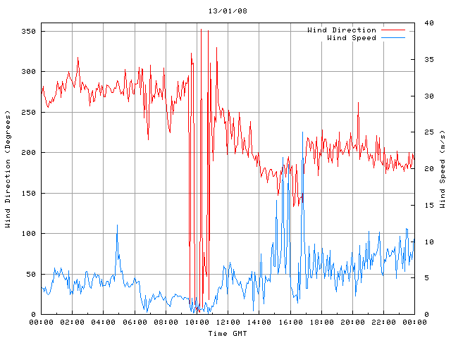 - Max Wind Speed: 25.0 ms-1 Time: 16:47:09 GMT