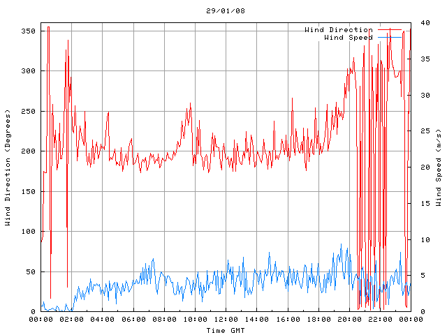 - Max Wind Speed: 9.4 ms-1 Time: 19:27:09 GMT