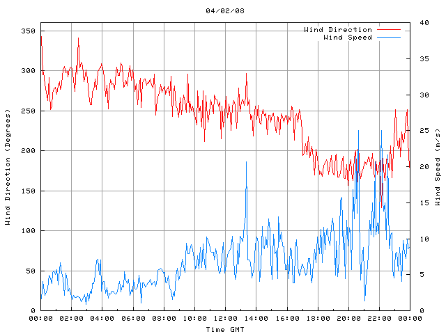 - Max Wind Speed: 25.0 ms-1 Time: 20:37:09 GMT