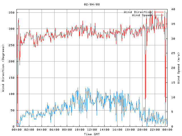 - Max Wind Speed: 13.4 ms-1 Time: 11:19:37 GMT