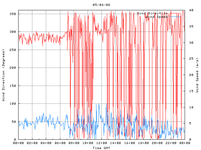 - Max Wind Speed: 11.1 ms-1 Time: 12:39:38 GMT