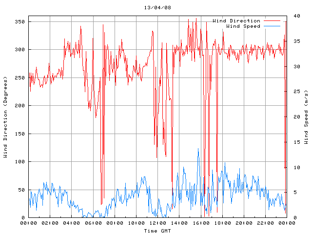 - Max Wind Speed: 13.8 ms-1 Time: 15:44:41 GMT