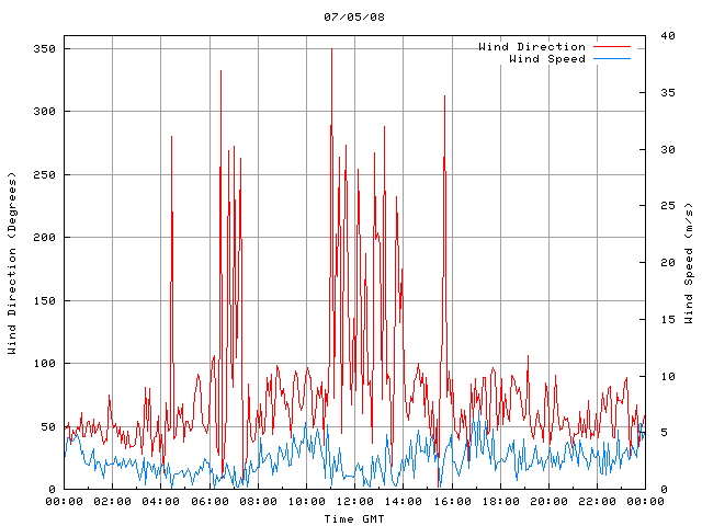 - Max Wind Speed: 6.9 ms-1 Time: 17:07:09 GMT