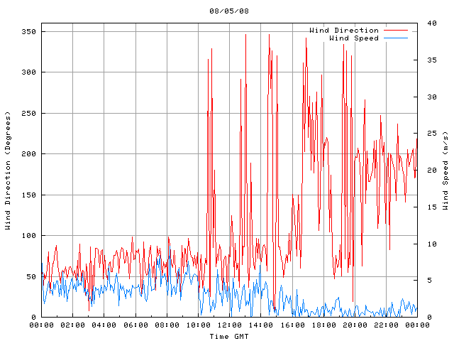 - Max Wind Speed: 9.7 ms-1 Time: 8:12:09 GMT
