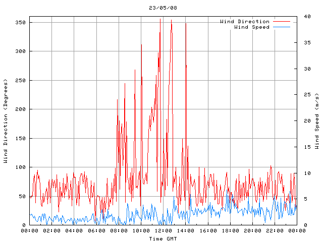 - Max Wind Speed: 6.7 ms-1 Time: 17:42:09 GMT