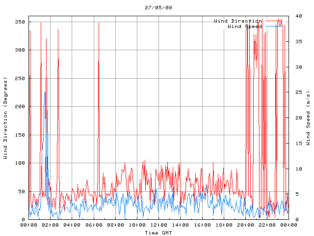 - Max Wind Speed: 25.0 ms-1 Time: 1:27:09 GMT