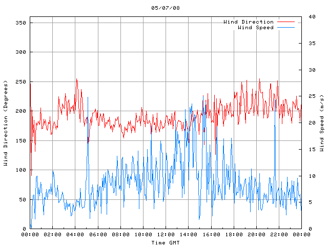 - Max Wind Speed: 25.0 ms-1 Time: 15:17:09 GMT