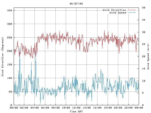 - Max Wind Speed: 23.5 ms-1 Time: 1:07:09 GMT