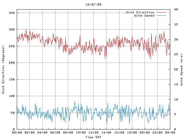 - Max Wind Speed: 9.4 ms-1 Time: 9:02:09 GMT
