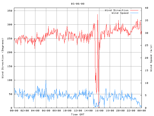 - Max Wind Speed: 11.2 ms-1 Time: 5:57:09 GMT