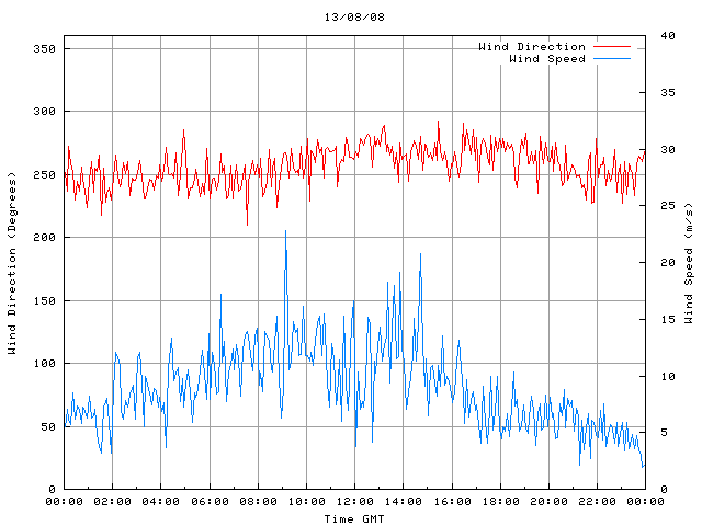 - Max Wind Speed: 22.8 ms-1 Time: 9:07:09 GMT