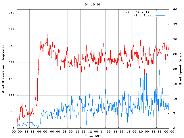 - Max Wind Speed: 23.2 ms-1 Time: 20:27:09 GMT