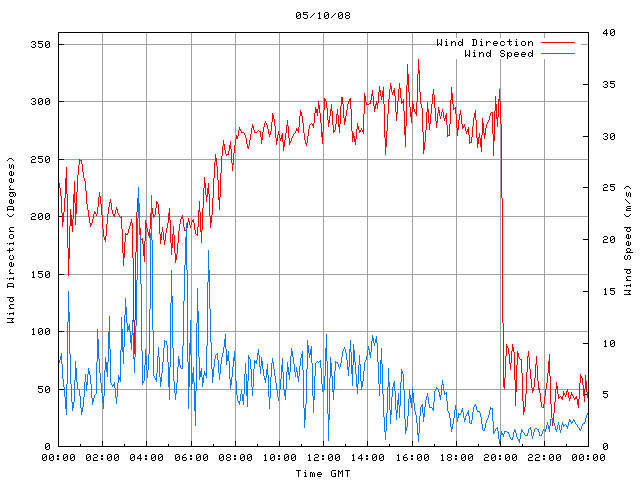 - Max Wind Speed: 25.0 ms-1 Time: 3:37:09 GMT