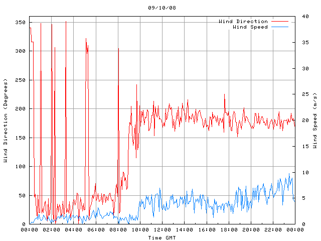 - Max Wind Speed: 9.8 ms-1 Time: 23:27:09 GMT