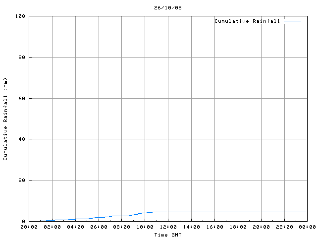 The PML meteorological station, situated on the south-west corner of the building roof, consists of a Hygroclip S3 temperature and humidity sensor housed in a radiation shield, a Mierij Meteo solid state wind sensor (MMW-005), a Chelsea instruments half-hemisphere PAR sensor, a Li-Cor pyranometer (LI-200SZ) and an Omni Instruments 6" tipping bucket raingauge (RG200). The data are logged every 5 minutes using a Pace Scientific XR5 data logger. The real-time rainfall data is likely in error - the correct values will be displayed after a time lag of approximately 24 hours. The meteorological station is sheltered from winds in the north-east and underestimates winds from this quarter. To use these data please contact Dr Tim Smyth.
