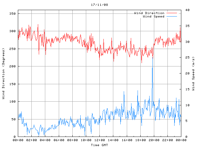 - Max Wind Speed: 25.0 ms-1 Time: 19:45:13 GMT