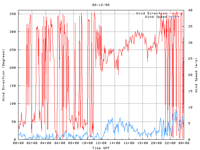 - Max Wind Speed: 9.4 ms-1 Time: 22:42:53 GMT