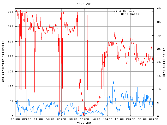 - Max Wind Speed: 13.4 ms-1 Time: 16:54:21 GMT