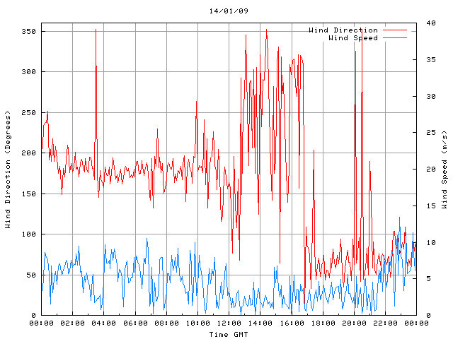 - Max Wind Speed: 13.5 ms-1 Time: 22:54:21 GMT