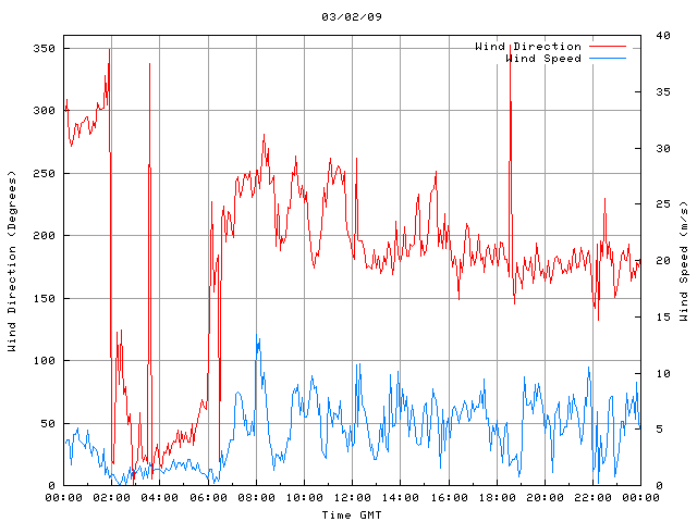 - Max Wind Speed: 13.4 ms-1 Time: 7:59:21 GMT