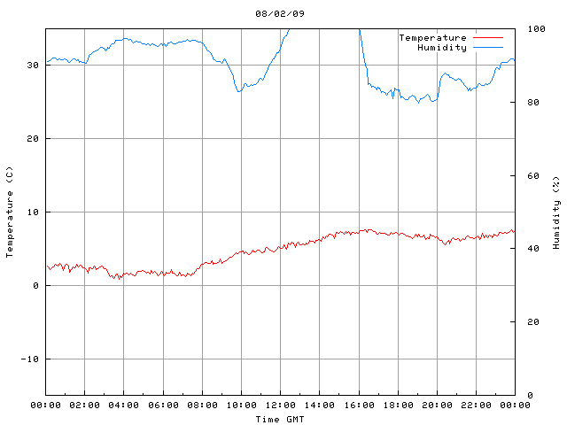 - Max Temp: 7.6 °C Time: 16:19:21 GMT