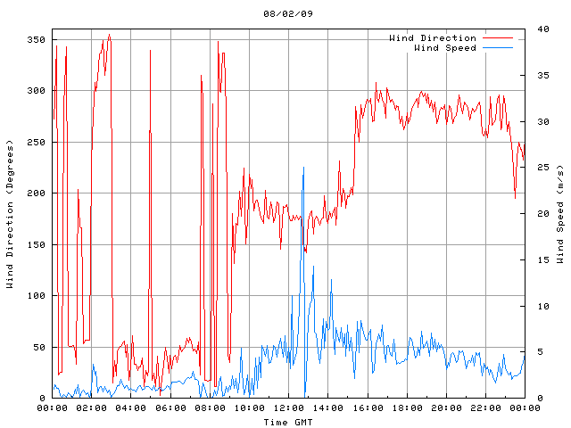 - Max Wind Speed: 25.0 ms-1 Time: 12:44:21 GMT