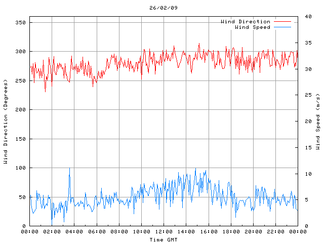 - Max Wind Speed: 11.1 ms-1 Time: 3:34:21 GMT