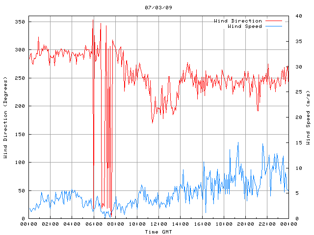 - Max Wind Speed: 15.1 ms-1 Time: 19:19:21 GMT