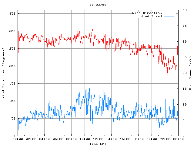 - Max Wind Speed: 17.8 ms-1 Time: 23:19:21 GMT
