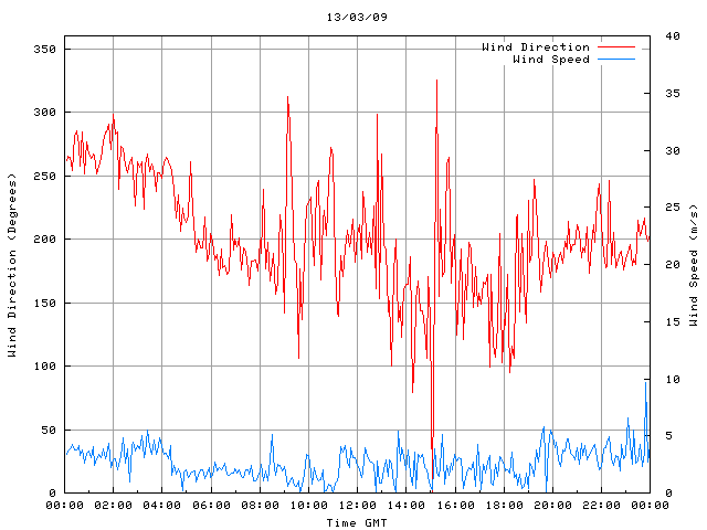 - Max Wind Speed: 9.7 ms-1 Time: 23:49:21 GMT