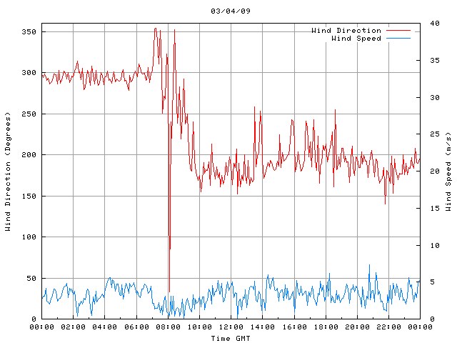 - Max Wind Speed: 7.3 ms-1 Time: 20:45:05 GMT