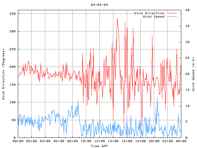 - Max Wind Speed: 12.5 ms-1 Time: 20:30:05 GMT