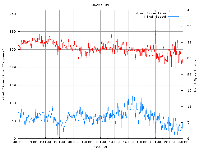 - Max Wind Speed: 13.6 ms-1 Time: 16:00:05 GMT