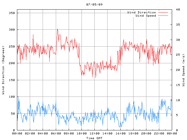 - Max Wind Speed: 10.9 ms-1 Time: 0:10:05 GMT