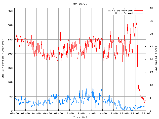 - Max Wind Speed: 9.7 ms-1 Time: 13:10:05 GMT