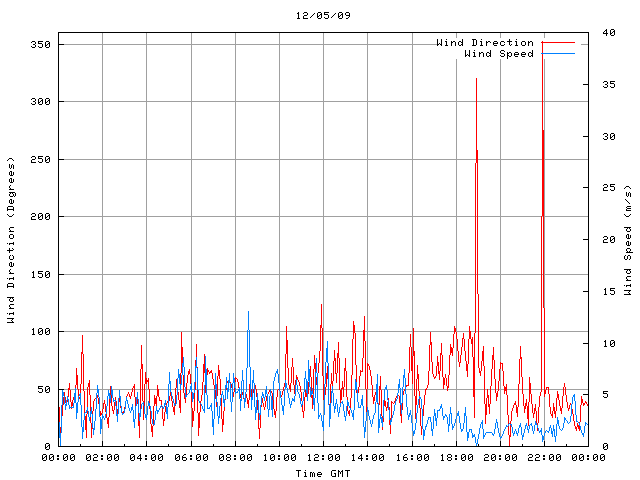 - Max Wind Speed: 13.0 ms-1 Time: 8:35:05 GMT