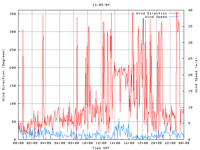 - Max Wind Speed: 6.5 ms-1 Time: 14:35:05 GMT