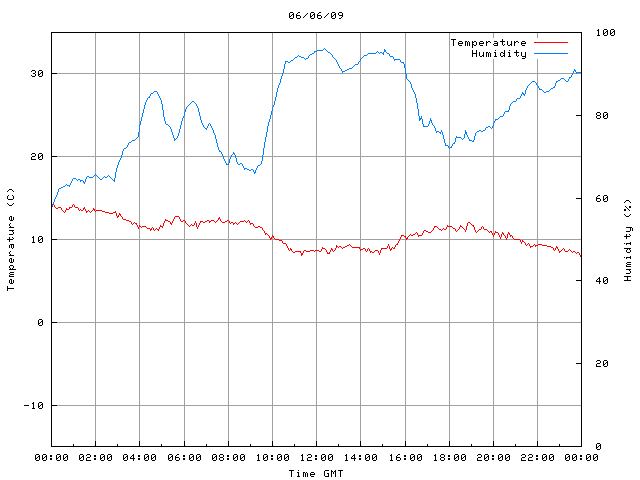 - Max Temp: 14.2 °C Time: 0:05:05 GMT