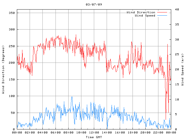- Max Wind Speed: 10.8 ms-1 Time: 8:30:05 GMT